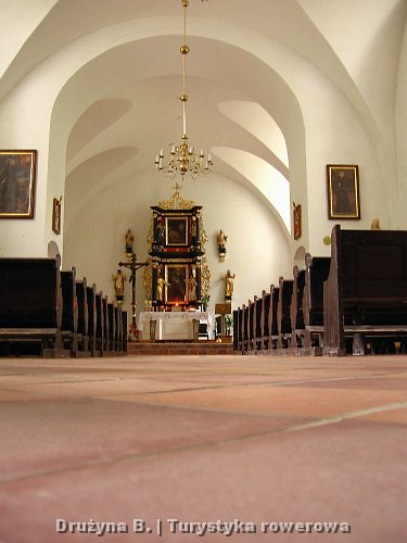 Wnętrze klasztornego kościoła. Cały kompleks budynków, dziś systematycznie odbudowywany, jeszcze kilkanaście lat temu stał w ruinie.