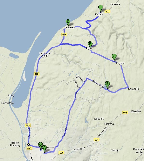 Elbląg - Jelenia Dolina - Pagórki - Łęcze - Suchacz - Kadyny - Łęcze - Kamionek Wielki - Elbląg | 67 km