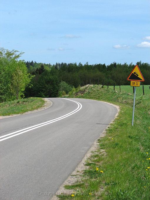 Długi weekend majowy sprzyjał rowerowaniu - w okolicach Kościerzyny natrafiłem na około setkę rowerzystów jadących w mocno rozciągniętym "peletonie", zapewne z któregoś z okolicznych ośrodków wypoczynkowych (lub, sądząc po liczebności, z wszystkich ośrodków razem wziętych). Przypominało to trochę miejskie happeningi "masy krytycznej" tyle tylko, że było to na jakiejś bocznej drodze w środku lasu.