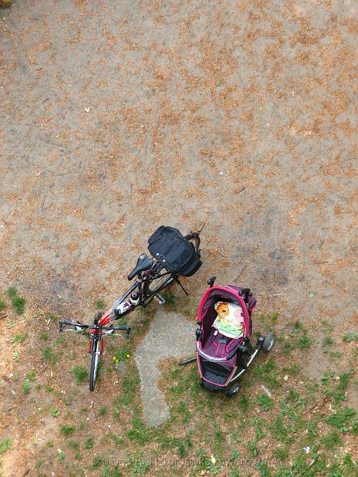 Pod wieżą zameldowałem się po godzinie 1700 i coś mi podpowiedziało po cichutku, żeby upewnić się co do godziny odjazdu ostatniego pociągu z usytuowanego u podnóża wzniesienia przystanku kolejowego. Jadąc na punkt widokowy byłem przekonany, że mam czas do 2000, kiedy w rzeczywistości miałem kilkanaście minut. To zdecydowanie za mało, żeby wejść na wieżę, więc po sprawdzeniu drobnego druczku u dołu rozkładu jazdy pozostało mi śmignąć w dół na pociąg. Szkoda sposobności, ale postanowiłem wrócić tam niebawem. Powrót rowerem do Tczewa odpadał, bo silnie wiejący tego dnia wiatr sprawiał, że każdy kilometr smakował podwójnie.