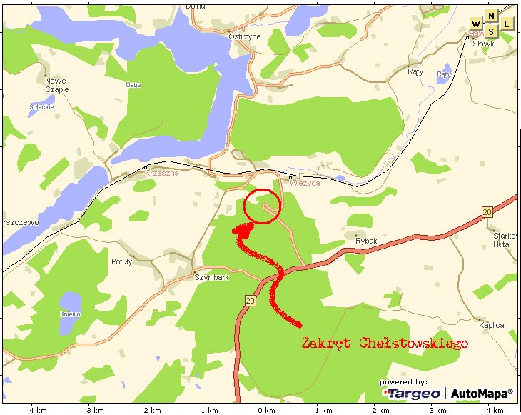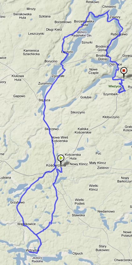 Po zaspokojeniu mojego estetycznego głodu wspaniałymi widokami udałem się na Wieżycę, żeby obejrzeć Kaszuby z innej perspektywy. Poprowadziłem trasę przez Stężycę i dalej zachodnią stroną Jez. Raduńskiego Dolnego, żeby przed "wspinaczką" na Wieżycę móc jeszcze pokonać malowniczy odcinek Drogi Kaszubskiej prowadzący doń od Chmielna.