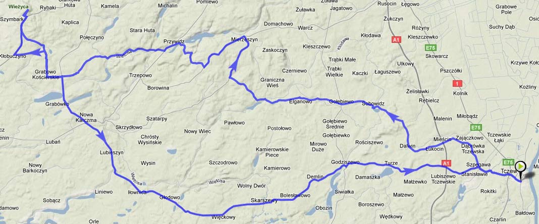 W czerwcu roku 2010 otwarto we Wdzydzach Kiszewskich wieżę widokową o wysokości 36 m, z której rozpościera się wspaniała panorama na Wdzydzki Park Krajobrazowy, stąd pomysł aby rozpocząć przejażdżkę w oddalonej o niecałe 20 km Kościerzynie.
