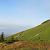 Szybko się rozjaśniało i pierwsze promienie Słońca oficjalnie rozpoczęły sobotę. Przekraczając granicę lasu zobaczyłem to, czego nie widziałem na Skrzycznem i dzień wcześniej. Błękit nieba kontrastujący z zielenią kosodrzewiny oferował wspaniałe pejzaże. Przy schronisku zatrzymałem się na dłużej, bo szczyt był jeszcze delikatnie skryty we mgle. Kiedy odsłonił się dokończyłem marszrutę i krótko po siódmej byłem u celu.