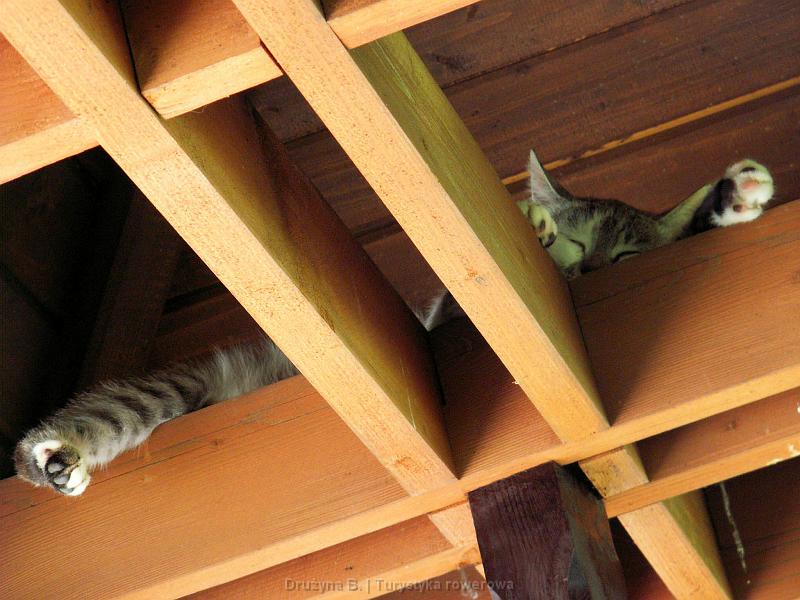Nie chcąc tracić dni zabraliśmy się na południe nocnym pociągiem i zaraz po wysiadce w Nowym Targu wczesnym popołudniem mogliśmy zacząć pedałowanie. Traf chciał, że nasz urlop zaczął się w tym samym czasie, co lipcowe upały. Przywykli do wsiadania na rowery rześkimi porankami zaczęliśmy dla odmiany jazdę przy 35˚C. Nie pozostało nam nic innego jak prędko uciec z miejskiego betonu na otwartą przestrzeń. Droga biegnąca wzdłuż Dunajca u stóp pasma Gorców, jakkolwiek malownicza, nie była tym, na co czekaliśmy, więc w Dębnie skręciliśmy w kierunku zamku w Niedzicy, by na solidnym trzykilometrowym podjeździe do Falsztyna przypomnieć sobie, że jesteśmy w górach. W nagrodę za wysiłek rowerki dociążone sakwami rozpędziły się na zjeździe do 74 km/h. Zjazd o długości ośmiu kilometrów przerwaliśmy koło zamku. Tam, poza muzeum i świetnym punktem widokowym na Zbiornik Czorsztyński i zaporę, znajduje się również hotel. Rowery pozwolono nam zostawić w bramie zamku, więc były bezpieczne w razie deszczu, a ten zapowiadał się głośnymi grzmotami już od Dębna.